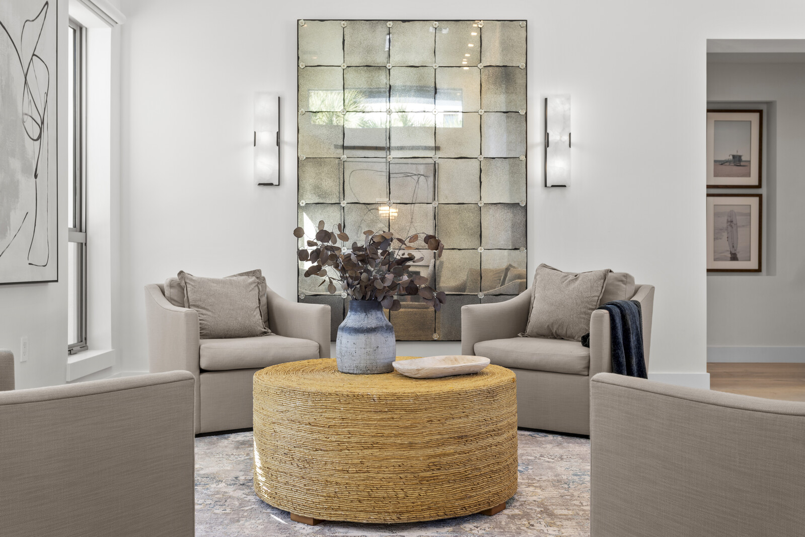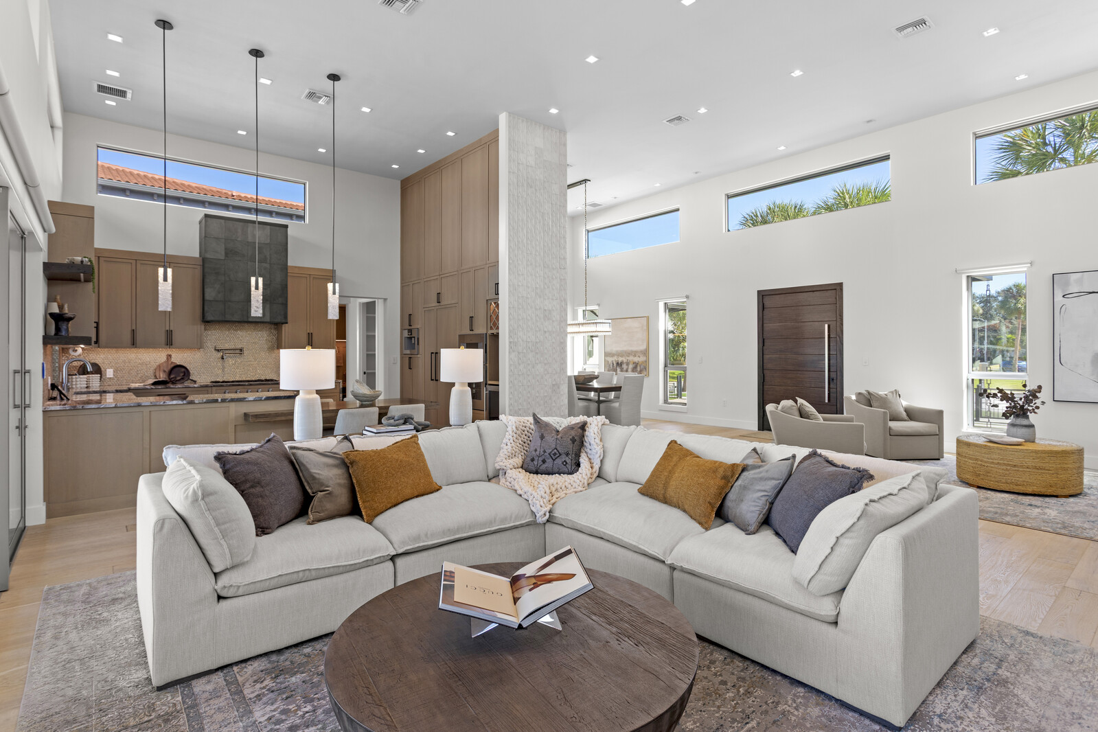 The reconstruction started by creating one-level living and 15-foot-high ceilings, features that Calvin says many of his clients like too. The ultra-high ceilings allow for abundant windows and natural light, giving the home an airy, uplifting feel that fits perfectly with Florida’s sunny climate and outdoor lifestyle.